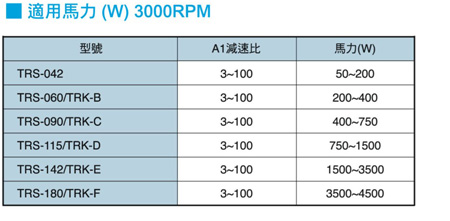 • 減速機轉(zhuǎn)動慣量、適用馬力、伺服馬達標準裝配系列