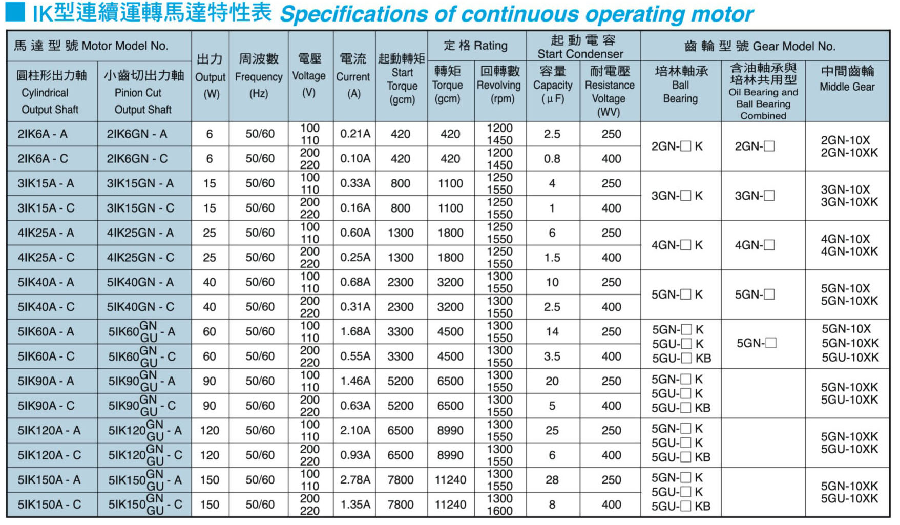 • IK型連續(xù)運轉(zhuǎn)馬達特性表