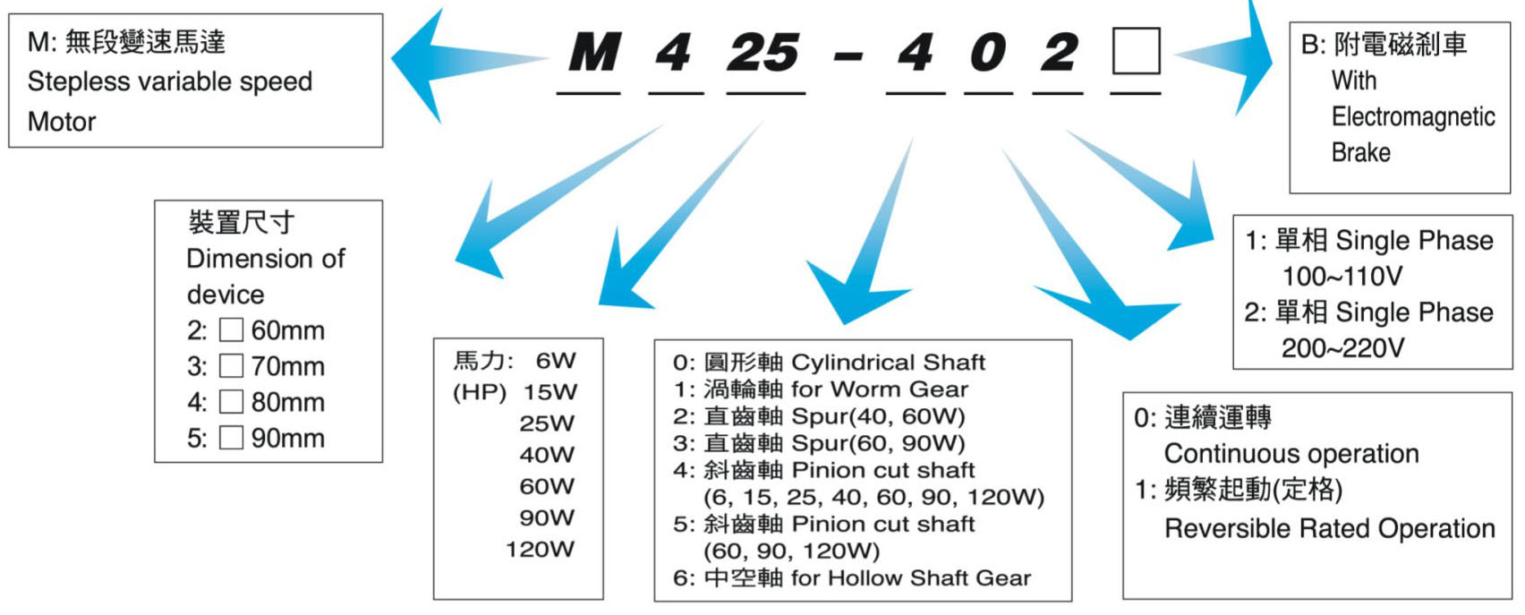 產(chǎn)品名稱:馬達型號解說 (US規(guī)格)