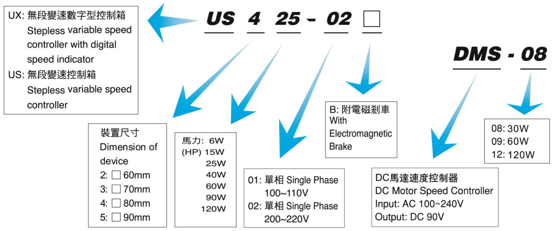 產(chǎn)品名稱:速度控制器型號解說(US/UX規(guī)格)